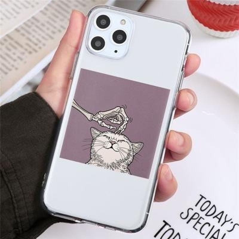 Череп Симпатичный кот Прозрачный чехол для телефона для iPhone 13 12 11 XS Samsung Galaxy A52s A70 A